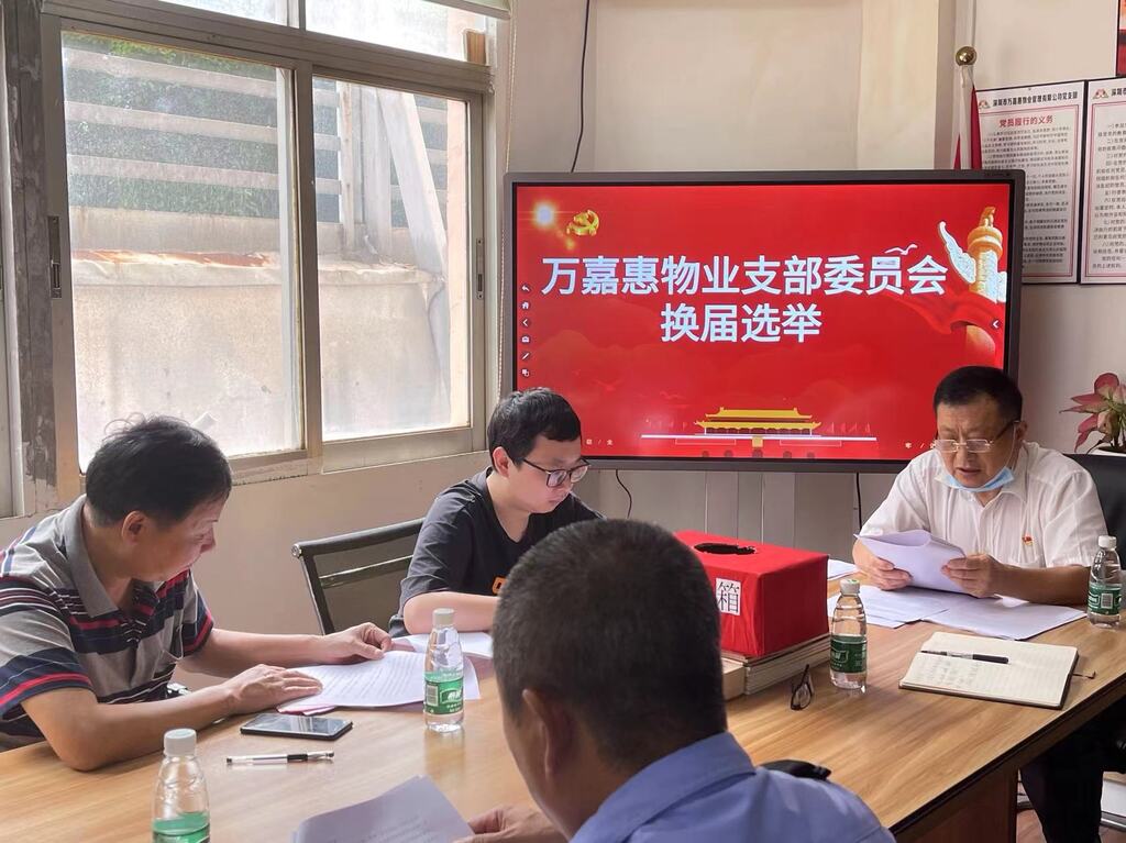 2022年6月15日10:30,中共深圳市萬嘉惠物業(yè)管理有限公司支部委員會換屆選舉大會在公司會議室召開。